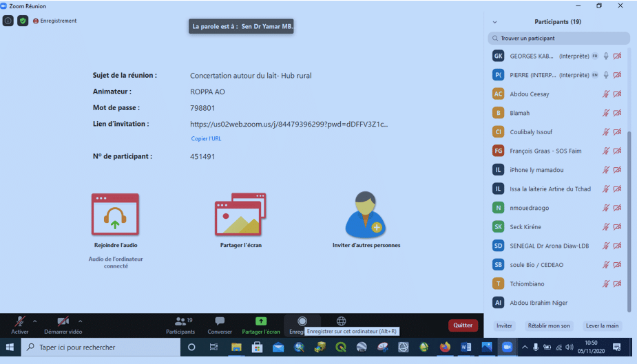 Cette vidéoconférence est conduite par la Direction Agriculture et Développement Rural de la CEDEAO en partenariat avec la « CAMPAGNE MON LAIT EST LOCAL » qui est coordonné par l’APESS. Ce sera une série de vidéoconférences qui s’étaleront tout au long du mois de novembre 2020 avec la facilitation du Hub Rural et de notamment de son Directeur exécutif le Dr YAMAR MBODJ.